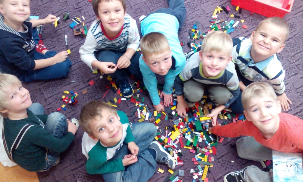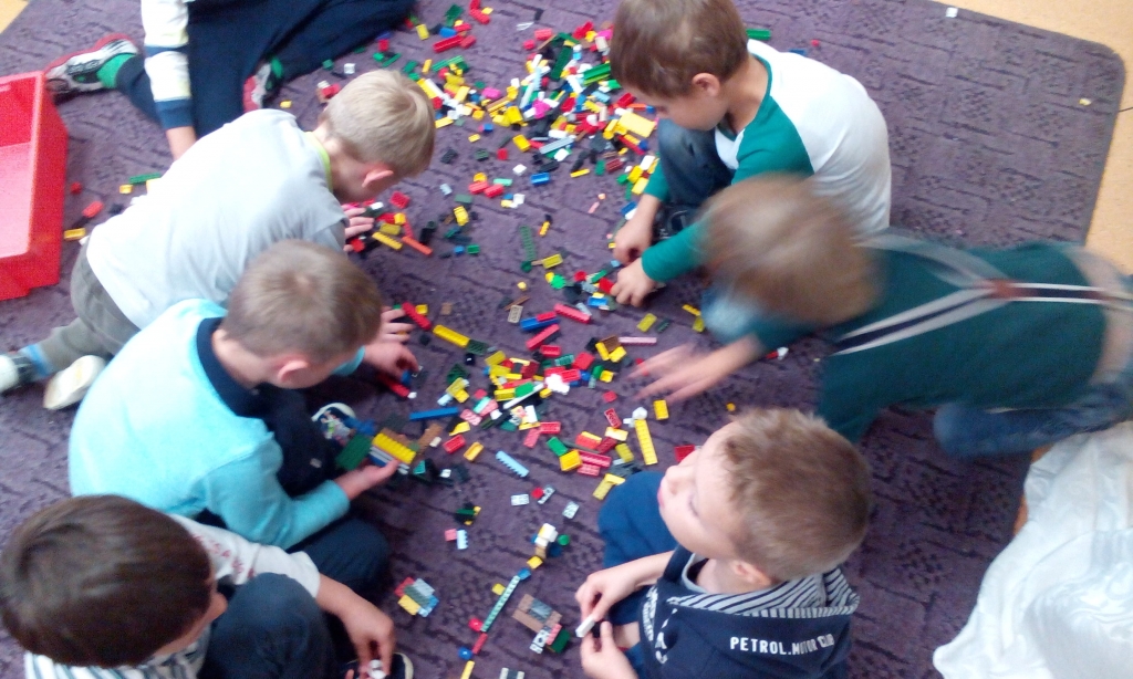 Każde dziecko uwielbia zabawę, zwłaszcza konstrukcyjną. Przekonały nas o tym przedszkolaki z grupy A, kiedy brały udział w mini zawodach konstrukcyjnych. Drużyna dziewcząt przeciwko grupie chłopaków. Zadaniem naszych małych konstruktorów było zbudowanie miasta z klocków lego i figur geometrycznych. Pomysłowości nie było granic. Makiety miast robiły się coraz to większe. Zabawa trwała tak długo, aż zabrakło konstrukcyjnego materiału.