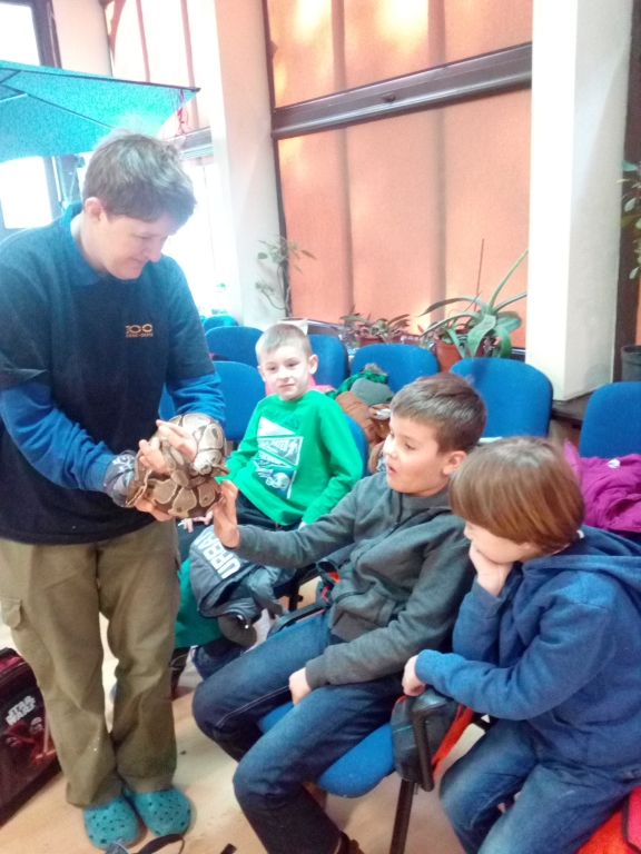 W tym roku szkolnym cyklicznie uczestniczyliśmy w „żywych” lekcjach przyrody na terenie ZOO w Gdańsku. Poznaliśmy cechy charakterystyczne dla ssaków, gadów, ptaków i płazów. Mogliśmy z bliska zobaczyć niektóre z tych zwierząt, dotknąć je i podziwiać ich różnorodność. Usłyszeliśmy wiele ciekawostek związanych ze światem zwierząt, ale również to, jaką rolę pełni ZOO. Na ostatnich zajęciach mogliśmy pobyć ze zwierzętami udomowionymi. Podsumowaniem zajęć był piknik na terenie Miejskiego Ogorodu Zoologicznego. Pogoda była piękna, humory dopisywały, radości z zabawy nie było końca.