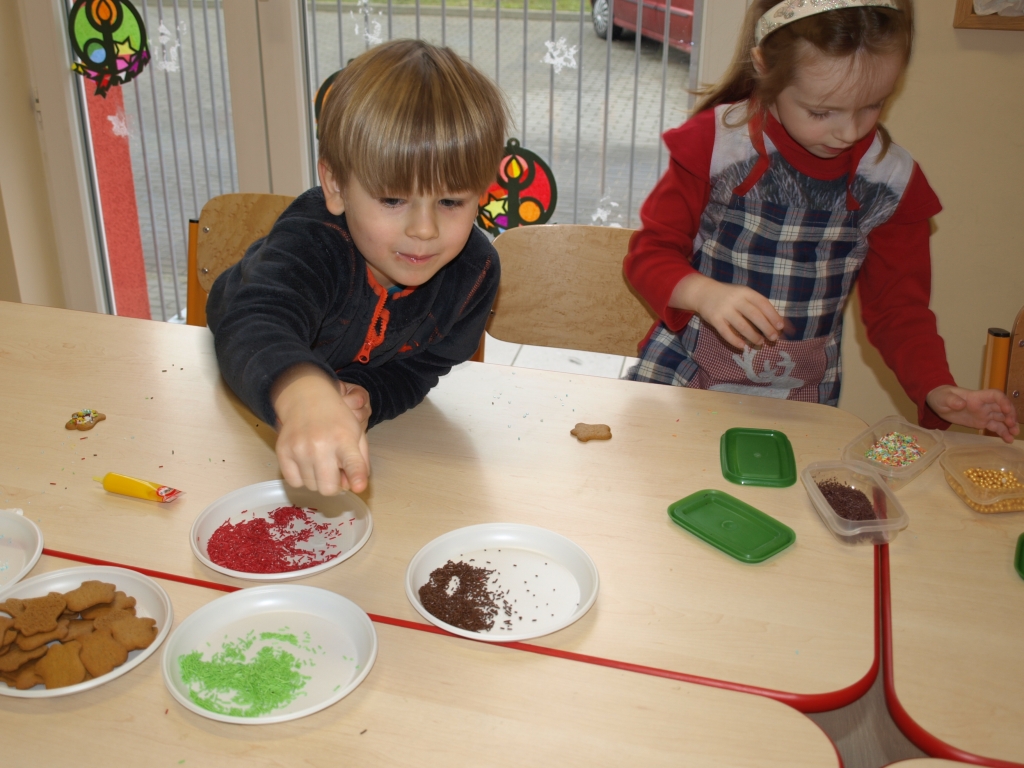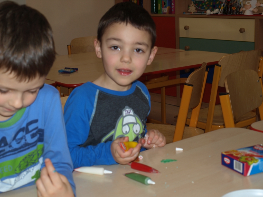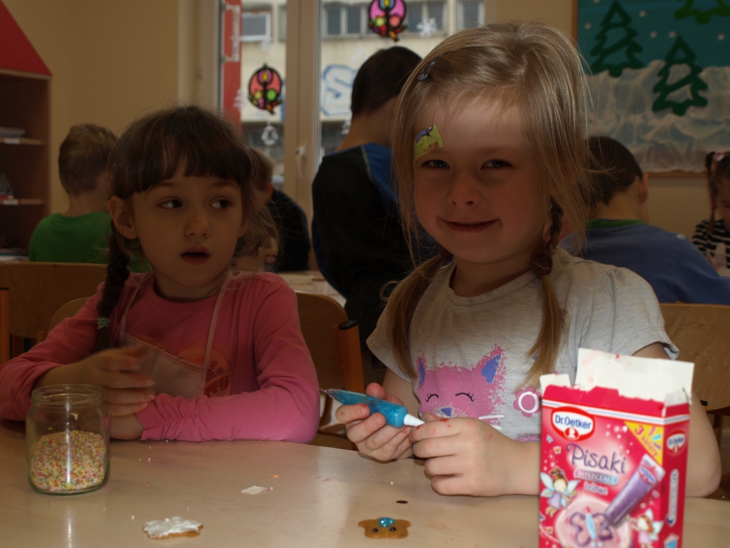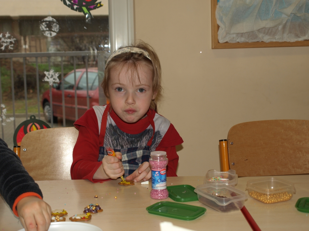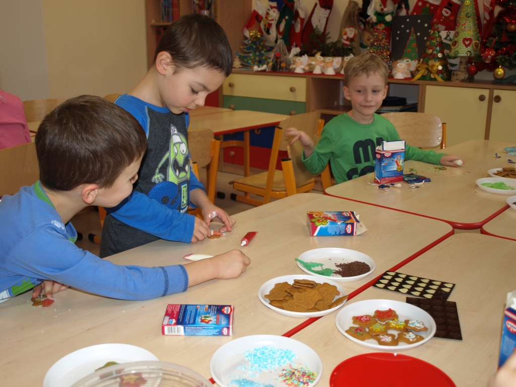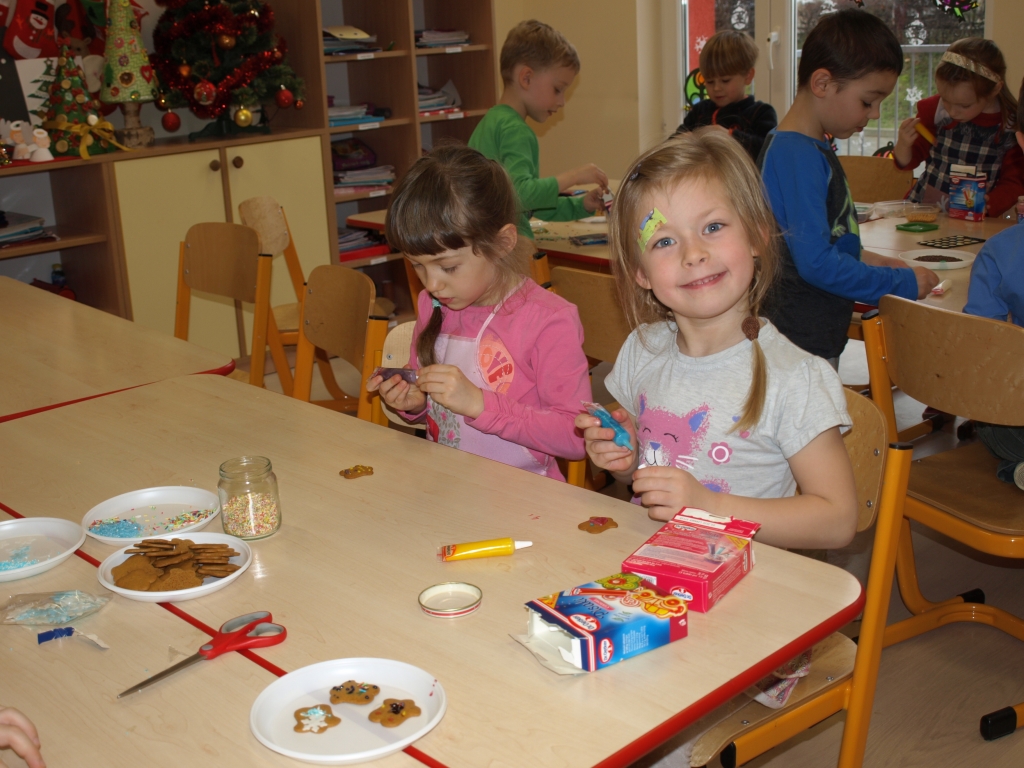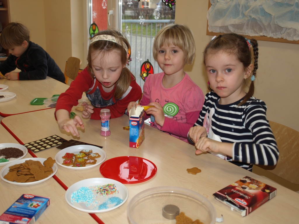 „Święta bez pierniczków to Święta stracone” – kierując się tym przesłaniem dzieci z grupy B postanowiły zadośćuczynić tej tradycji. W dniu 15 grudnia w ramach przygotowań do Świąt Bożego Narodzenia ozdabiały pierniczki różnokolorowymi lukrami i barwnymi posypkami (tu wielkie podziękowania za hojność wszystkim rodzicom, którzy zakupili potrzebne produkty). Oczywiście trudno się było oprzeć kolorowym cukiereczkom i słodkiemu lukrowi i nie skosztować choćby odrobinki.