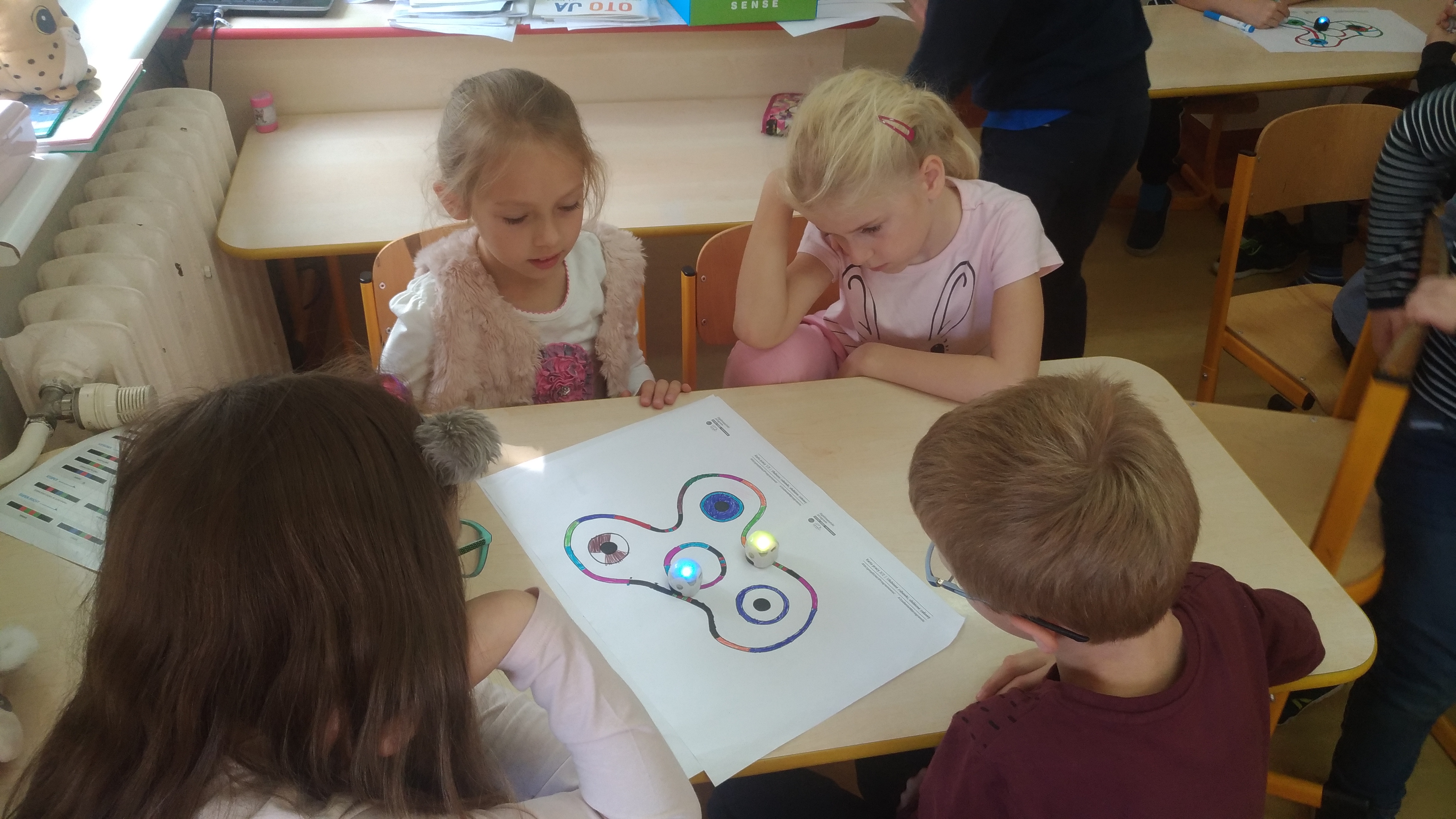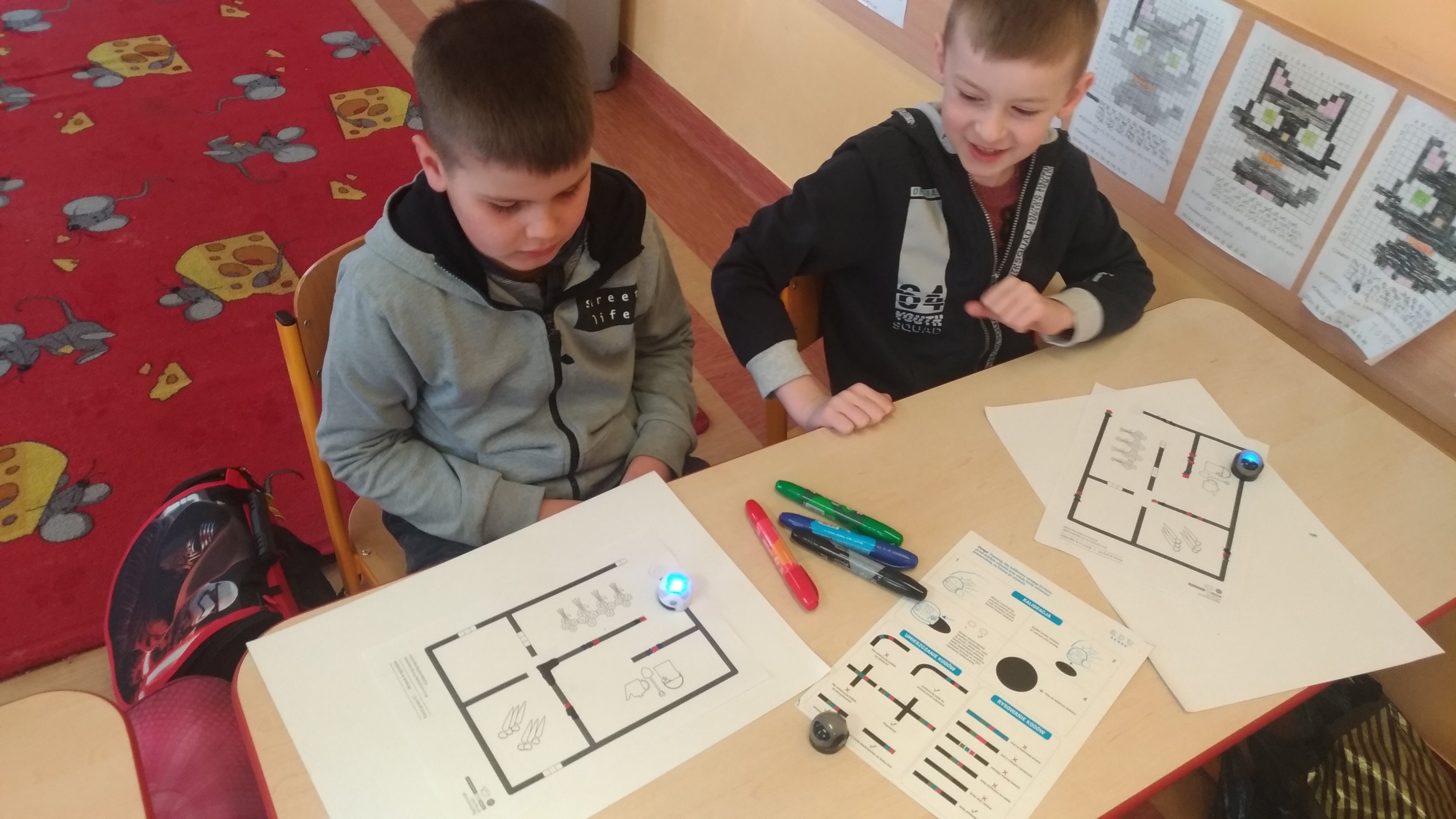 Pierwsze bardzo udane spotkanie klasy 1a z ozobotkami.