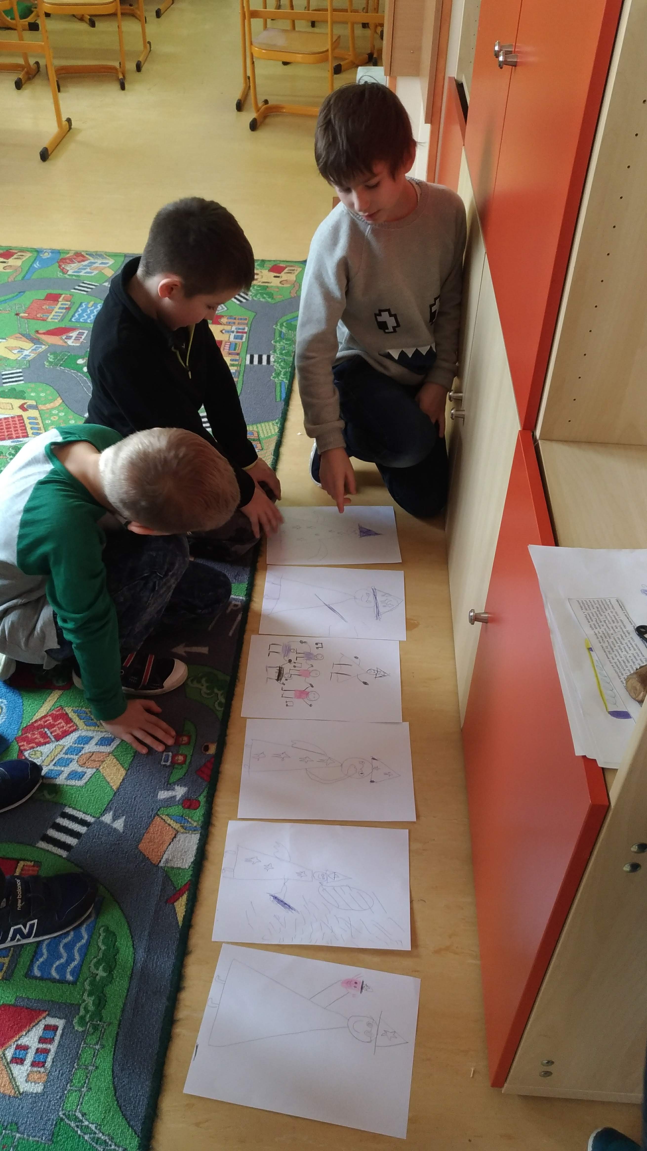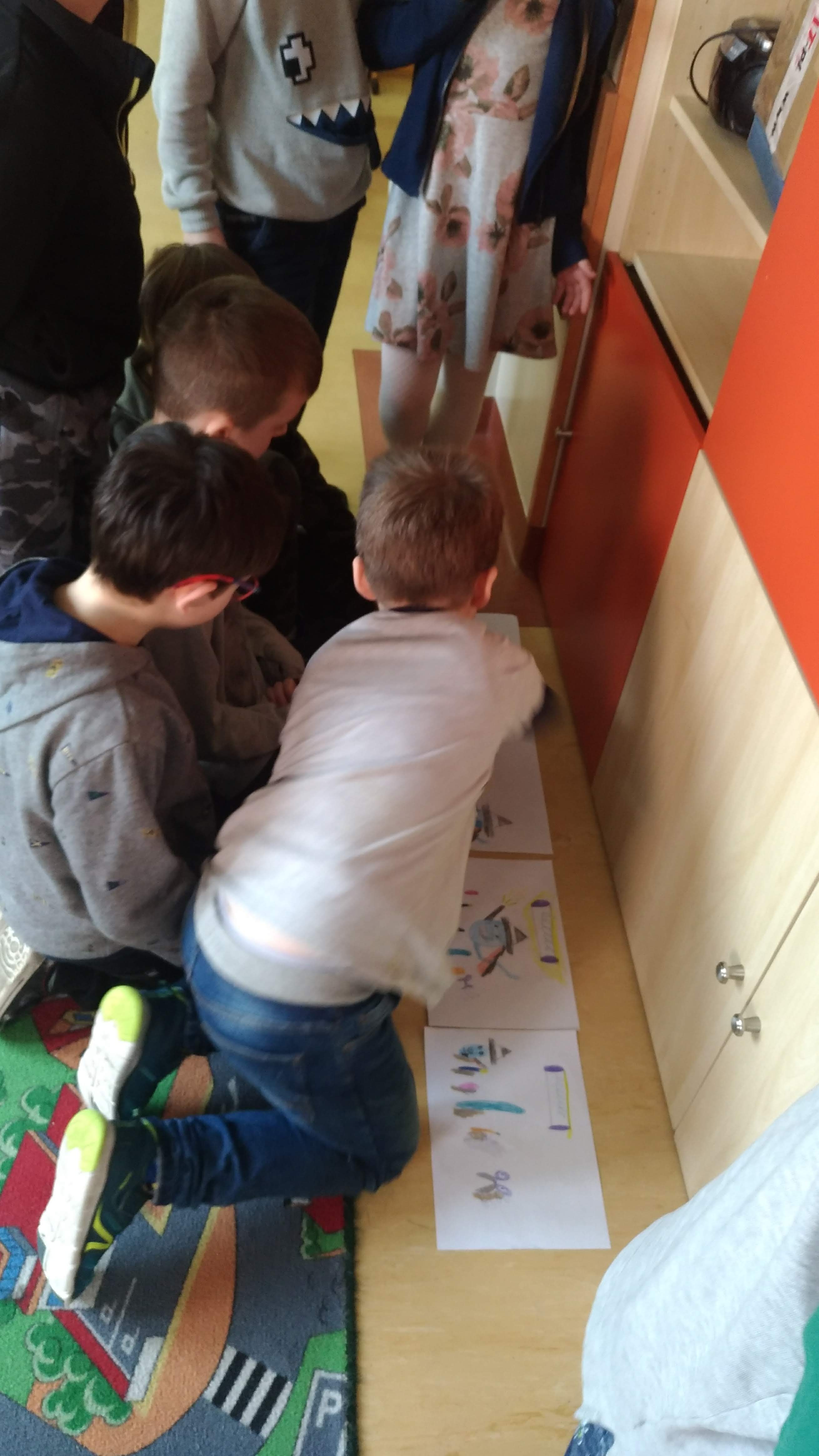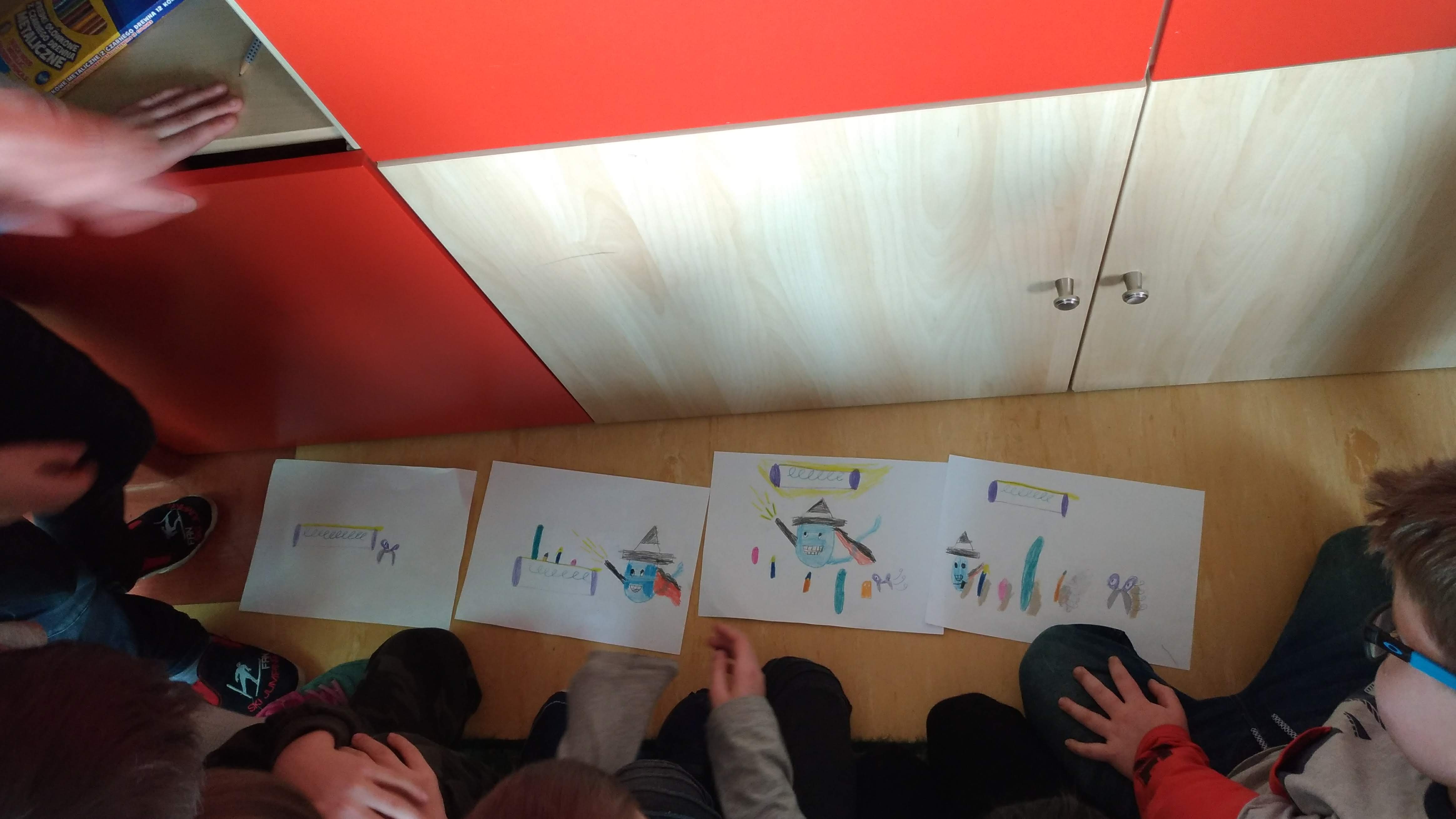 Nasza męska grupa wzbogaciła się o dziewczynkę:-) Dzieci z wielkim zaangażowaniem zabrały się za stworzenie cyfrowej opowieści. Doskonale poradziły sobie z wykonaniem rysunków do opowieści co zaowocowało bardzo trafnym rozpoznaniem historyjki przez drugą grupę. Dzięki tabletowi od MegaMisji uczniowie wykonali wspaniałe zdjęcia. Jeszcze raz dziękujemy!