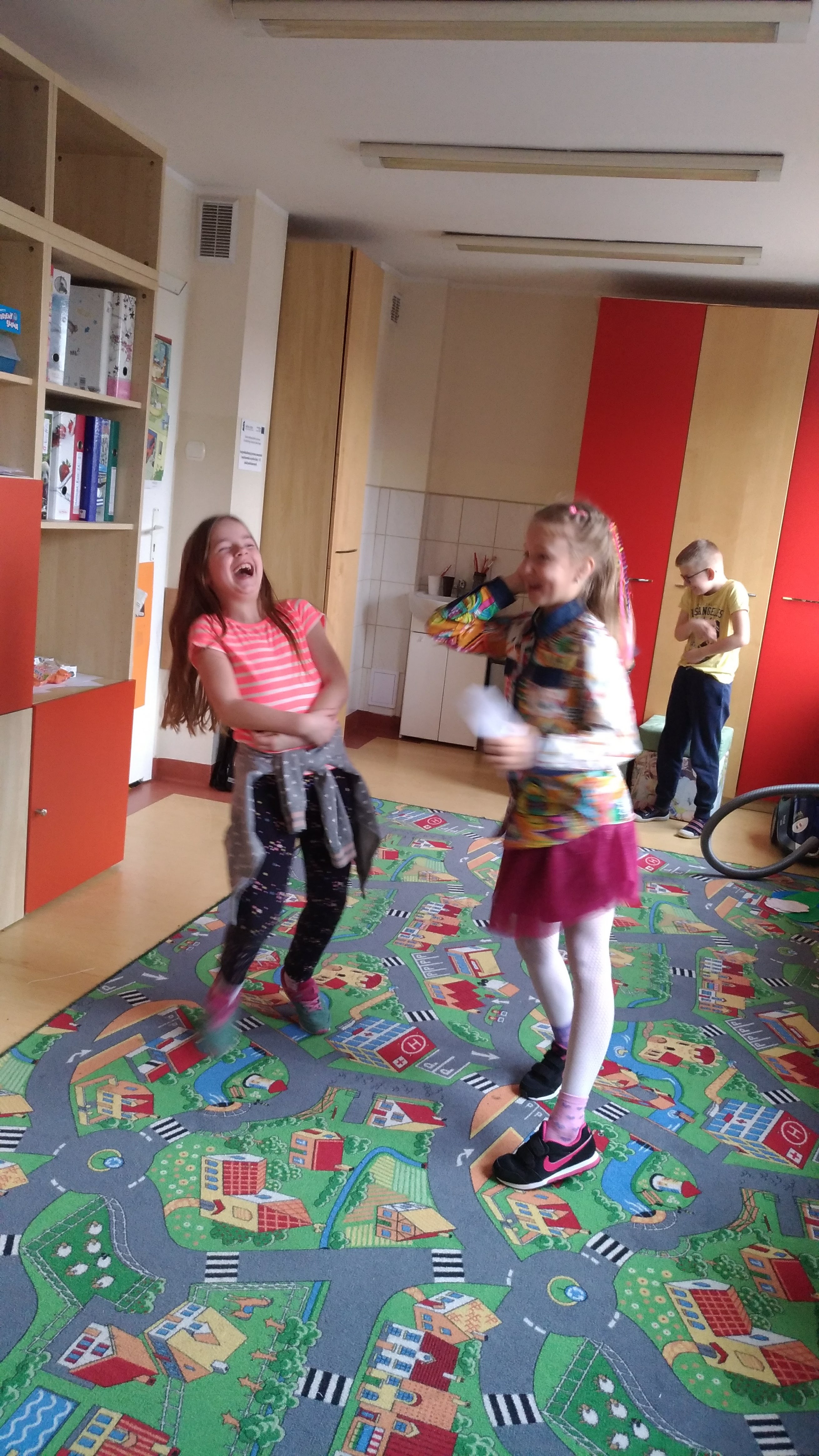 Dzieciom bardzo spodobał się pomysł zajęć stworzenia przyjaznego kina. Świetnie poradziły sobie z określeniem osób niepełnosprawnych. Przy kolorowaniu budynku od razu uczniowie zauważyli, że jest podjazd dla osób na wózkach, czy mamy z dzieckiem oraz szersze drzwi – bez klamki, bo wpadli na pomysł, że muszą być to drzwi, które same się otwierają. Pomyśleli też, że musi być kilka sal kinowych, aby w jednej sali był lektor, w drugiej tłumacz języka migowego, w trzeciej sala dla rodziców z małymi dziećmi. Były to bardzo pouczające zajęcia, a dzieci jak zwykle były bardzo kreatywne. Na koniec oczywiście megaradość-ubieranie naszej Urwiski:-)