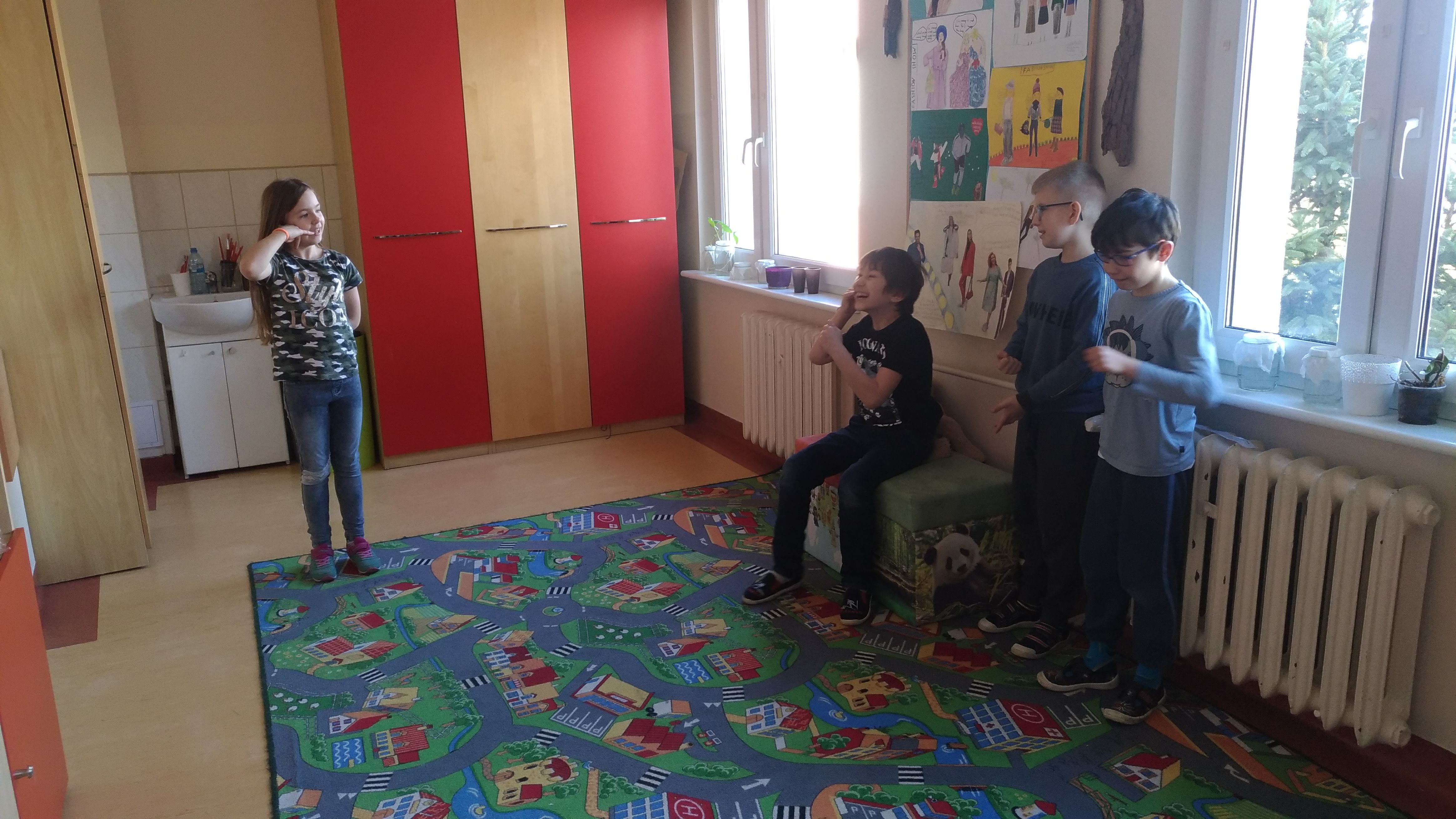 Dzieci bardzo lubią, gdy zaczyna się kolejny poziom. Były bardzo ciekawe, gdzie tym razem schował się Psotnik. Przeprowadziliśmy świetną rozmowę na temat ulubionych programów. Przy okazji dzieci określały, które z nich są przydatne, a bez których można by się było obyć. Rozmawialiśmy też o zasadach korzystania z telewizji – czy można siedzieć bez ograniczeń. Oczywiście największą radość sprawiło dzieciom odgrywanie scenek. To były kolejne Mega fajne zajęcia!